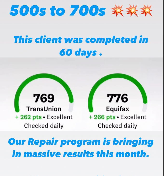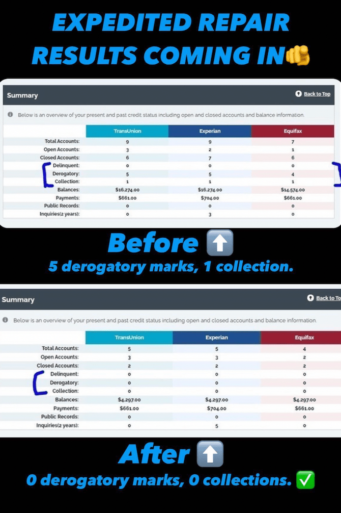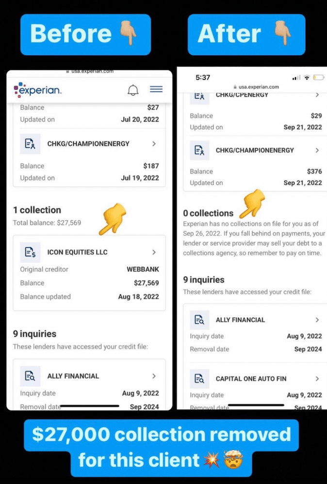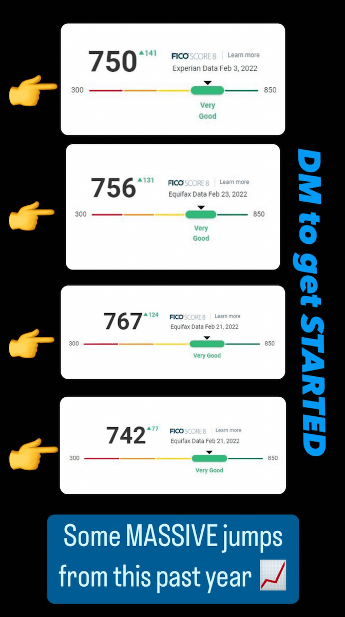 Take a look at some of our results below and fill out our credit repair form. A representative will be with you right away!